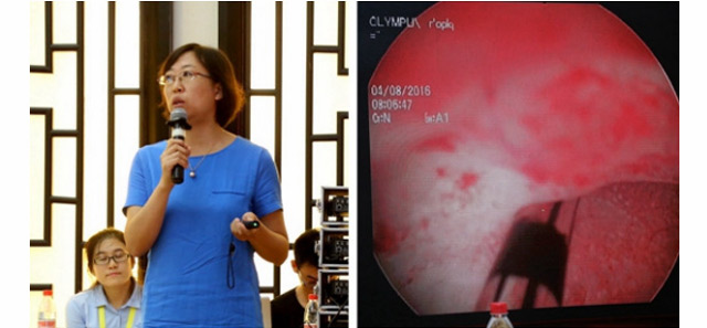 与会专家展示宫腹腔镜手术诊疗视频